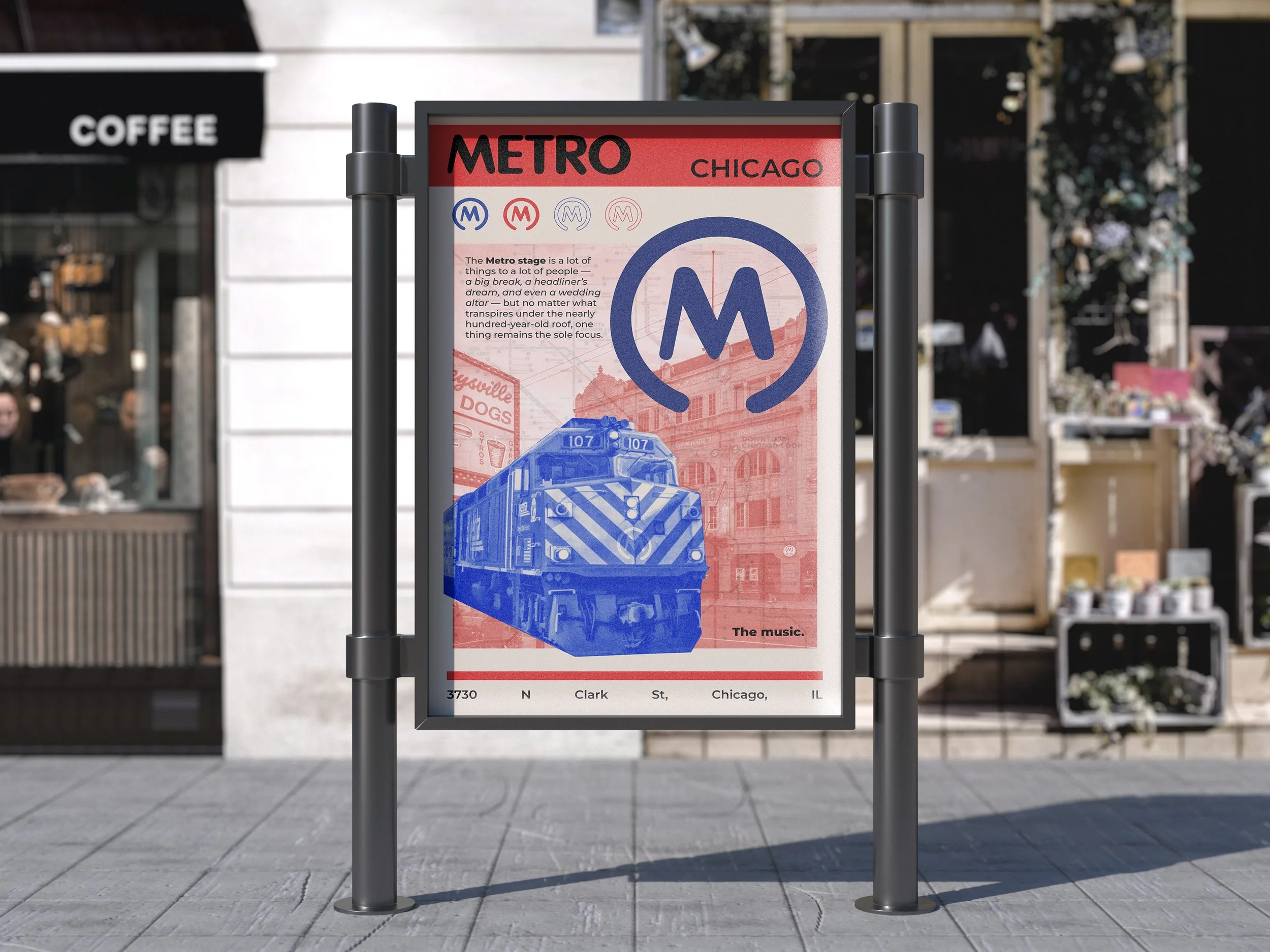 After creating the Salt Shed poster, I felt inspired to create for the iconic Metro concert venue in Chicago. I wanted to incorporate the relatable aspects one has when attending a show here, such as taking the metro, navigating the map, and getting a hot dog after the show.